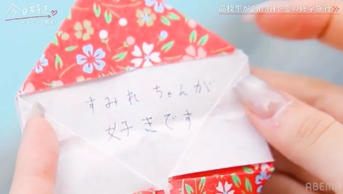 - 折り紙を渡し、そこには「すみれちゃんが好きです」の一言。