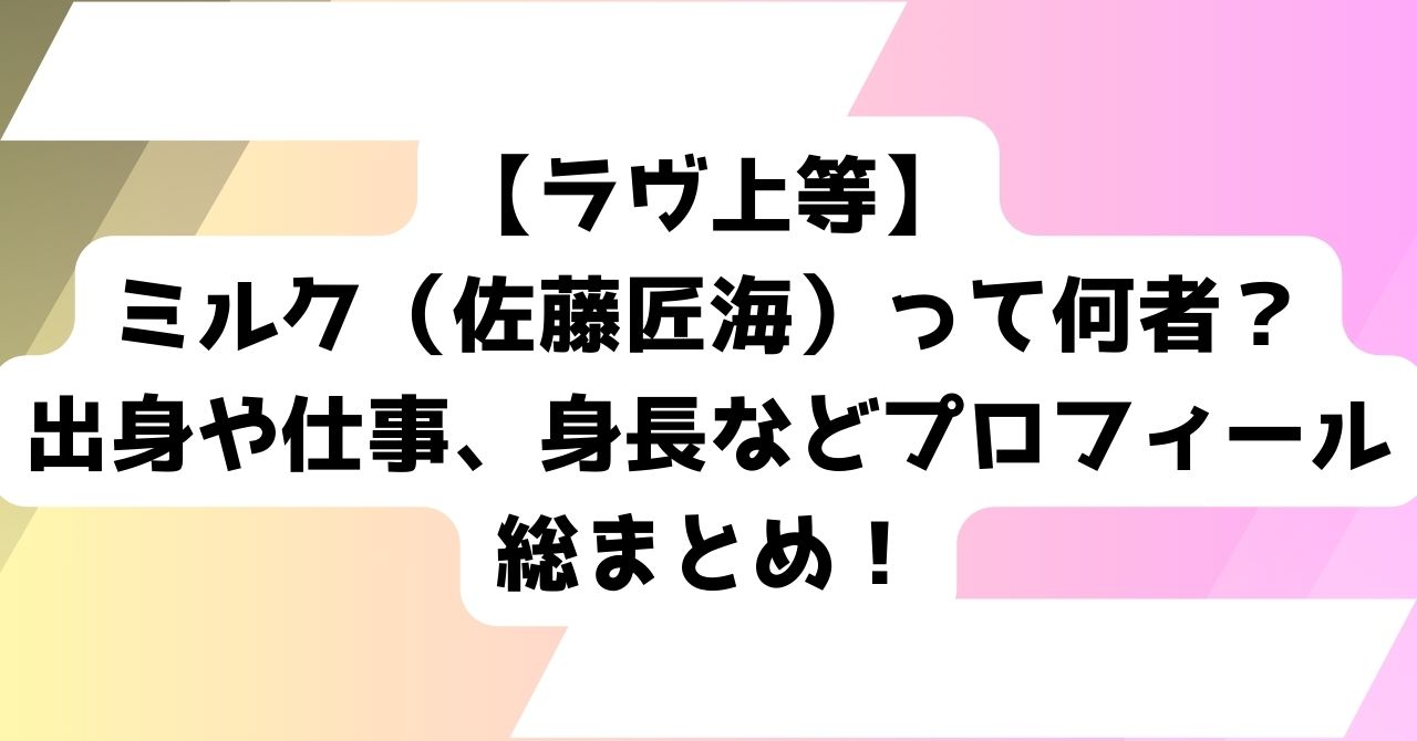 佐藤匠海(ミルク)さんの情報はまだ少なめで、身長などの細かいプロフィールは公表されていません。