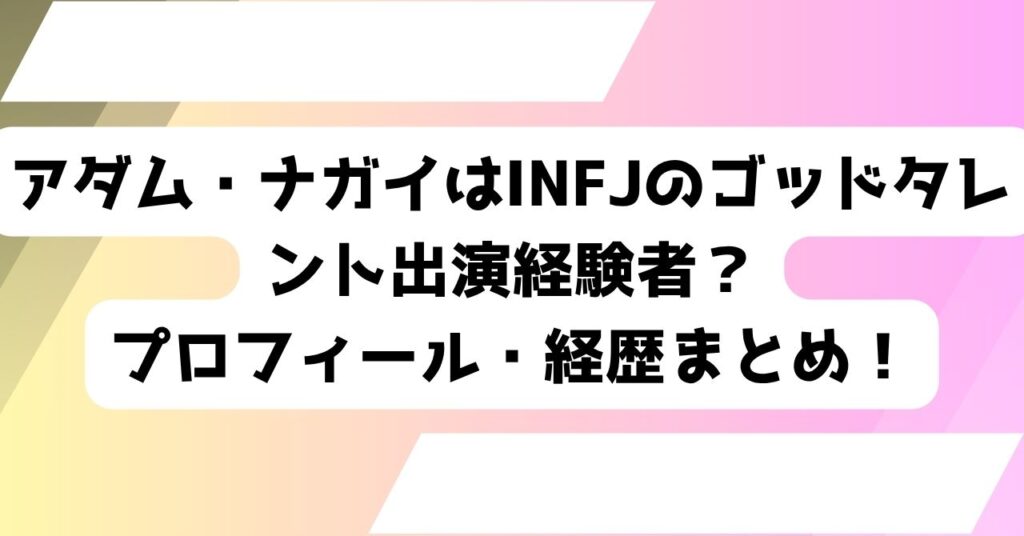 アダム・ナガイはINFJのゴッドタレント出演経験者?プロフィール・経歴まとめ!