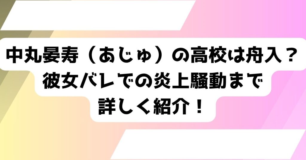 中丸晏寿(あじゅ)の高校は舟入?彼女バレでの炎上騒動まで詳しく紹介!