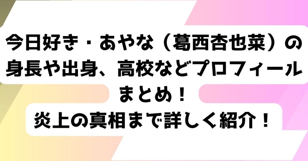 今日好き・あやな(葛西杏也菜)の身長や出身、高校などプロフィールまとめ!所属事務所や炎上の真相まで詳しく紹介!
