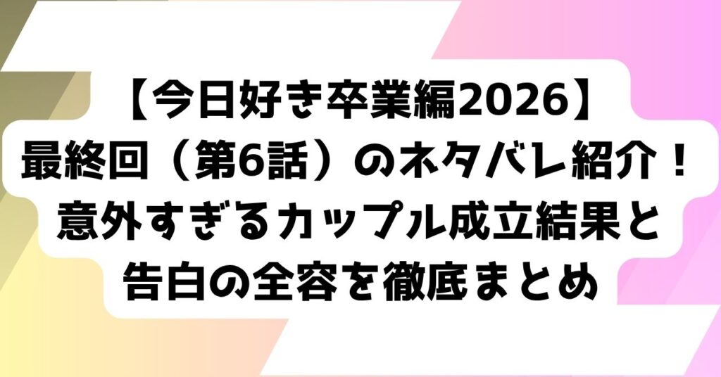 【今日好き卒業編2026】最終回(第6話)のネタバレ紹介!意外すぎるカップル成立結果と告白の全容を徹底まとめ