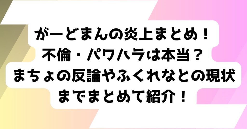 【不倫の動画はまだ見れる?】がーどまんの炎上まとめ!パワハラ疑惑の真相とふくれなとの現状までまとめて紹介!