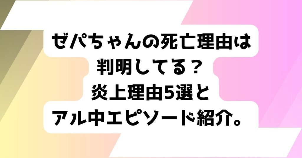 ゼパちゃんの死亡理由は判明してる?炎上理由5選とアル中エピソードも紹介。