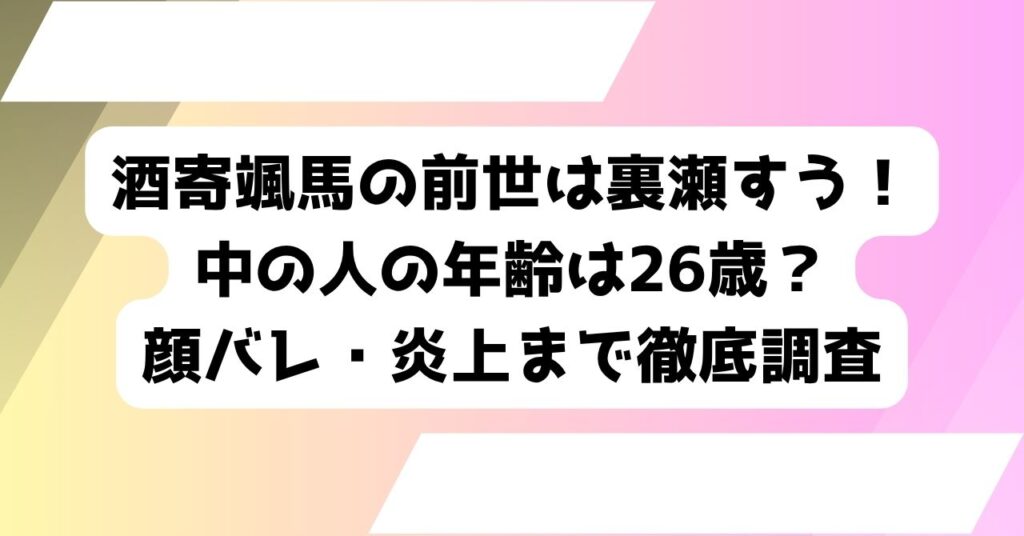 酒寄颯馬の前世は裏瀬すう!中の人の年齢は26歳?顔バレ・炎上まで徹底調査