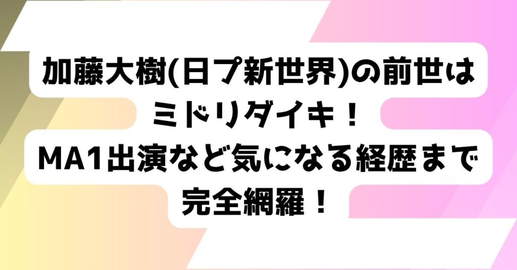 加藤大樹(日プ新世界)の前世はミドリダイキ!MA1出演など気になる経歴まで完全網羅!