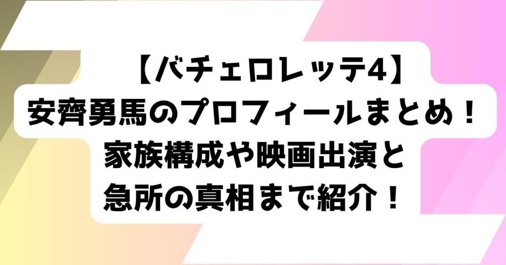 【バチェロレッテ4】安齊勇馬のプロフィールまとめ!家族構成や映画出演と急所の真相まで紹介!