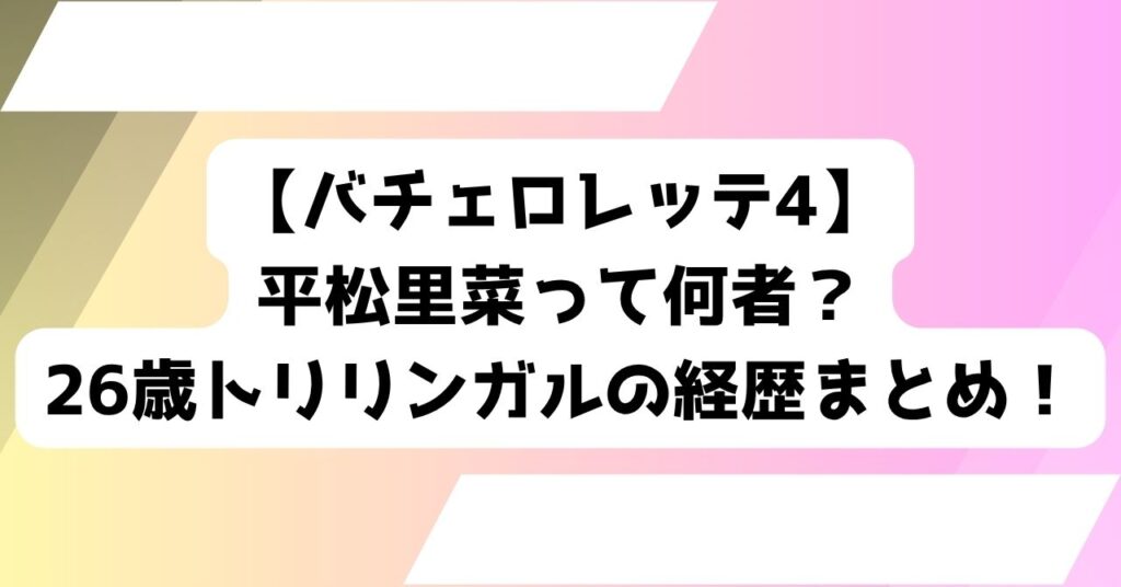 【バチェロレッテ4】平松里菜って何者?26歳トリリンガルの経歴・学歴・旧名「平松リナ」まで総まとめ!
