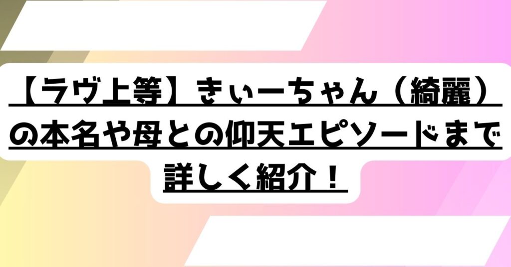 【ラヴ上等】きぃーちゃん(綺麗)の本名や母との仰天エピソードまで詳しく紹介!