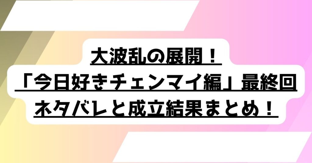 大波乱の展開!「今日好きチェンマイ編」最終回ネタバレと成立結果まとめ!