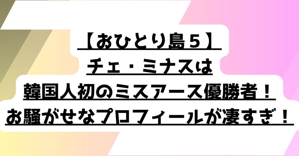 【おひとり島5】チェ・ミナスは韓国人初のミスアース優勝者!お騒がせなプロフィールが凄すぎた!