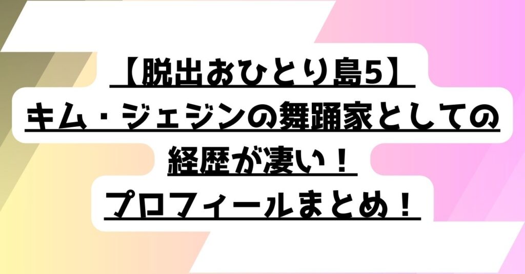 【脱出おひとり島5】キム・ジェジンの舞踊家としての経歴が凄い!身長・体重などプロフィールまとめ!