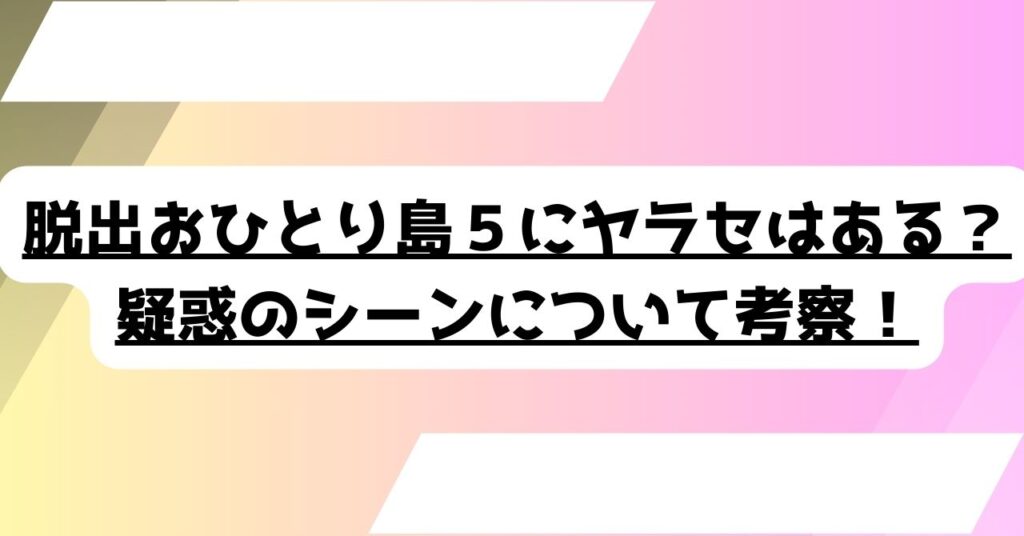 脱出おひとり島5にヤラセはある?疑惑のシーンについて考察!