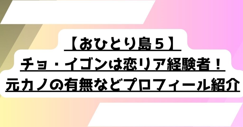【おひとり島5】チョ・イゴンは恋リア経験者!元カノの有無などプロフィール紹介
