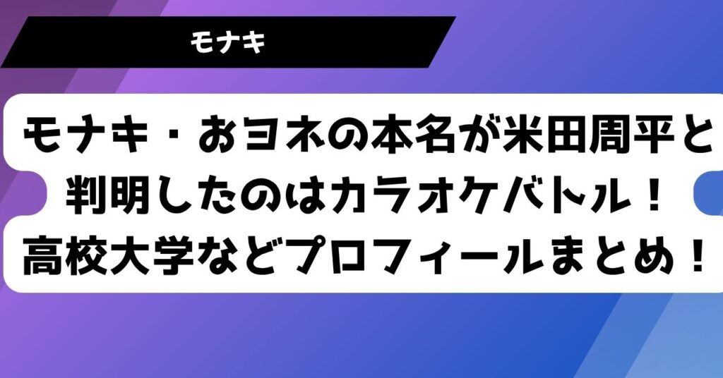 モナキ・おヨネの本名が米田周平と判明したのはカラオケバトル!高校大学などプロフィールまとめ!