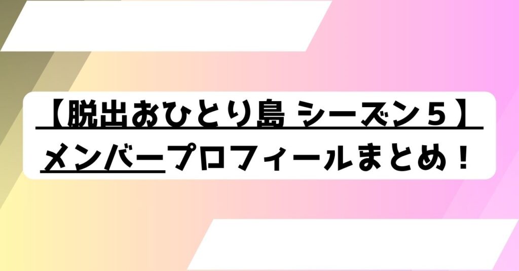 脱出おひとり島シーズン5のメンバープロフィールまとめ!配信やメンバー発表はいつ?