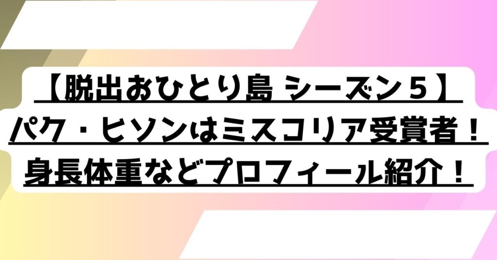 【おひとり島5】パク・ヒソンは高学歴のミスコリア受賞者!身長体重などプロフィール紹介!