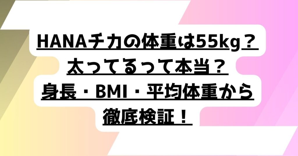 HANAのチカについて、 ・体重は公表されているの?・太っているって本当?・実際どれくらいなの? と疑問に思っている人は多いでしょう。 結論からお伝えします。 ✔ チカの体重は公式には非公開✔ 数値の確定情報はなし では、なぜ「55kg前後...