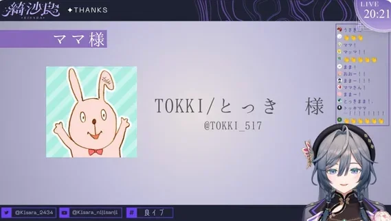 初配信でも「ママはとっきさん」と紹介されました。